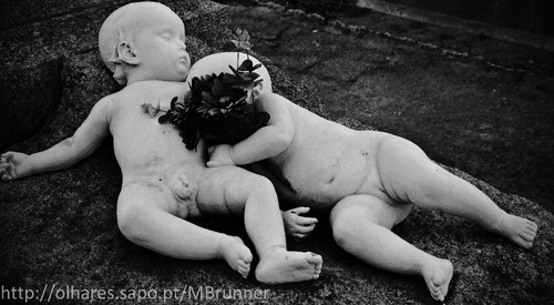 O meu blogue cá continua. Alguns visitantes a passar por cá, a ler o que por aqui vou dizendo. Hoje decidi alterar a imagem de apresentação - coloquei uma imagem mais pessoal, uma fotografia que tirei há algum tempo. Esta é a imagem de dois bebés que fazem parte de uma sepultura, no cemitério de Agramonte, na cidade do Porto, junto à rotunda da Boavista.